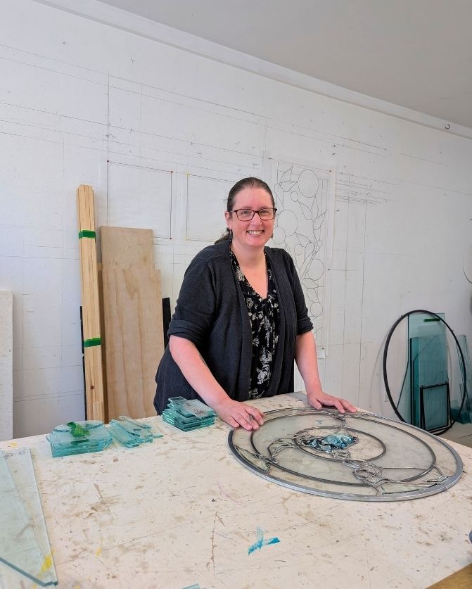 Born in Kitchener, Ontario, Krista grew up with a love for nature and all living creatures. After graduating from high school without a clear direction, she embarked on a journey that led her to take a stained glass course at Conestoga College in 1997, and she fell in love with the craft! Over the years, Krista's artistic career took her to various studios in St. Jacobs and Barrie, where she honed her technique for several years. Eventually, she found her way to Hanscomb Glass Studio, where she continued to develop her creative spirit.